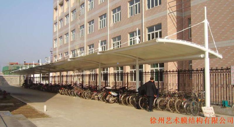膜结构车棚的篷布材质是膜结构,而膜材的最大特点是强度高、耐久性好、防火难燃、自洁性好,不受紫外线影响,使用寿命长,一般15-30年。具有高透光率,透光率为13%,对热能反射率73%,热吸收量很少。正是因为这种划时代的膜材料的发明,使膜结构车棚成为现代化的永久建筑。