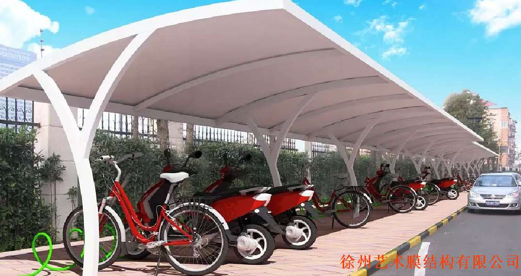 膜结构车棚的篷布材质是膜结构,而膜材的最大特点是强度高、耐久性好、防火难燃、自洁性好,不受紫外线影响,使用寿命长,一般15-30年。具有高透光率,透光率为13%,对热能反射率73%,热吸收量很少。正是因为这种划时代的膜材料的发明,使膜结构车棚成为现代化的永久建筑。